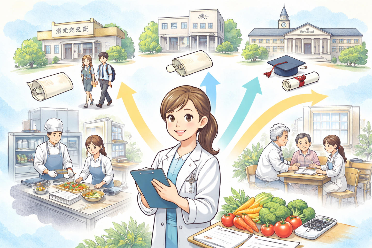 栄養士は試験ではなく「学校卒業」で取得する資格です。