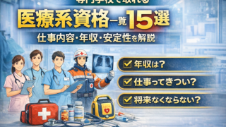 専門学校で取得できる医療系資格を一覧で解説。看護師や理学療法士、救急救命士などの仕事内容、年収、安定性まで分かりやすく紹介。進路選びに役立つ医療職のリアルを解説します。